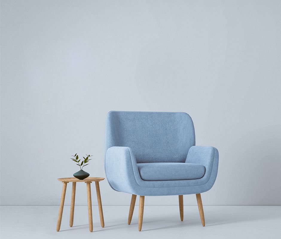 - Soy-based polyfoam cushion with fiber encased in downproof ticking